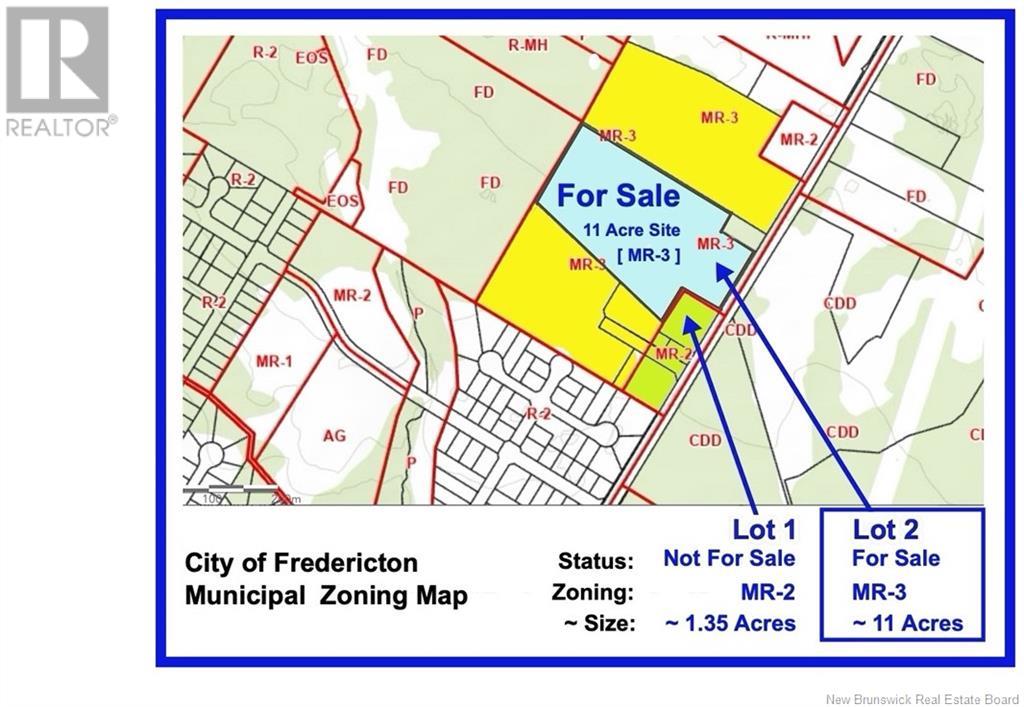 Exceptional residential development / investment opportunity: 11 acres of prime mixed density residential development land on Brookside Drive in Fredericton! Located close to the West Hills Golf Course, Brookside Mall (including Sobeys, Lawtons, Horizon Health, SNB, and more) and many other key services and amenities! The MR-3 Zoning classification permits both high and low density development, including Apartments, Townhomes, Duplexes, Semi-Detached, Assisted Living, Child Care, and more. The centrally located ""Brookside"" neighborhood is designated as a ""Growth Node"" in the current City of Fredericton Growth Strategy and Municipal Plan documents. Note: the Sellers plan to survey and subdivide approximately 11 acre parcel from the current 12.35 acre PID# 75438325 prior to closing. Contact your REALTOR for more information today! (id:58209)