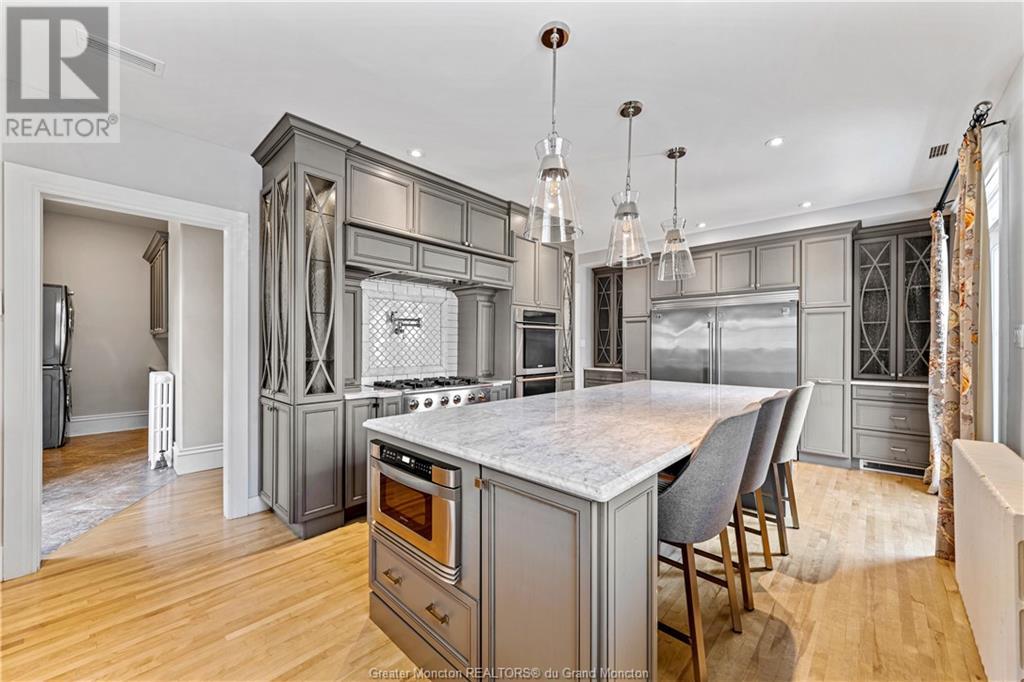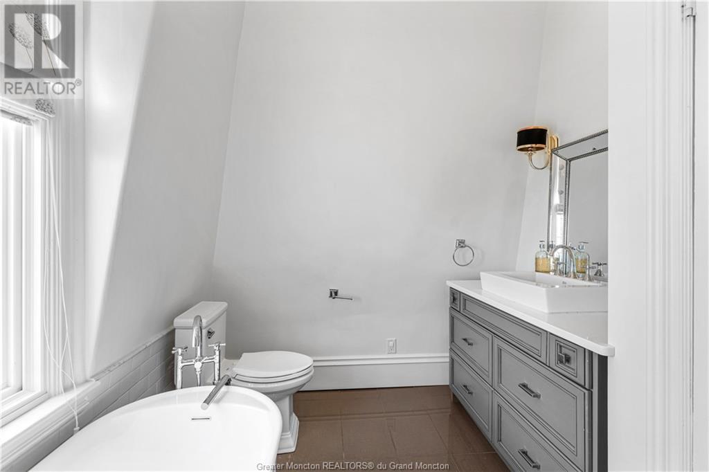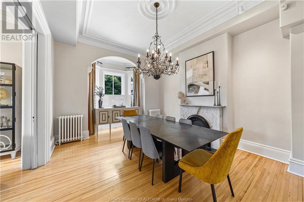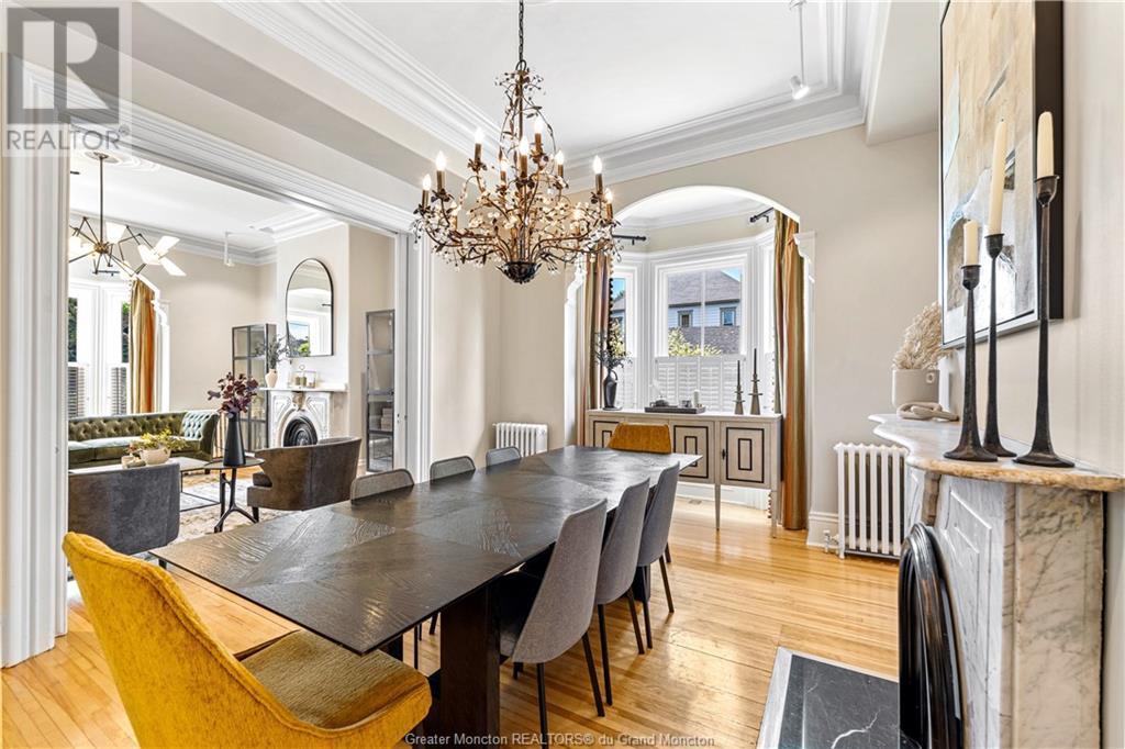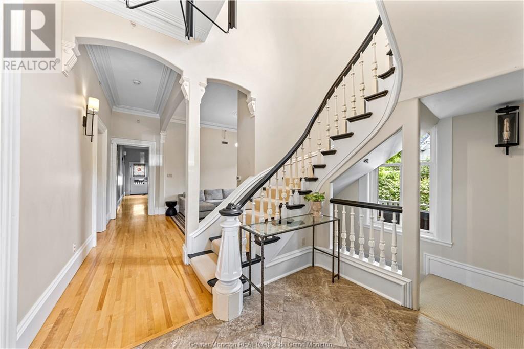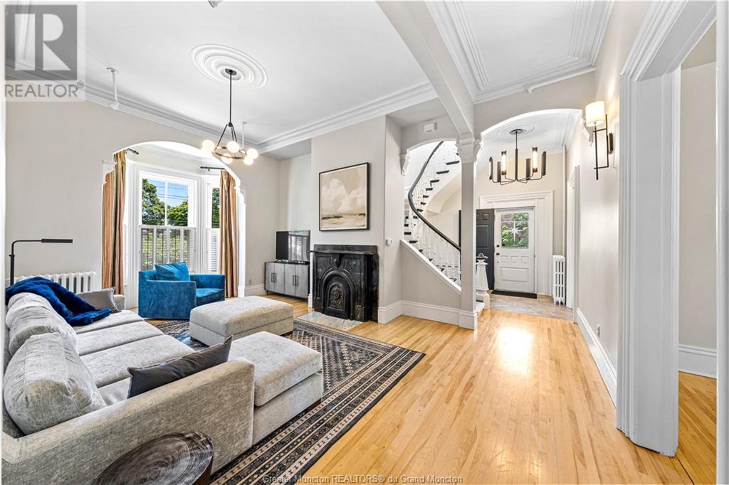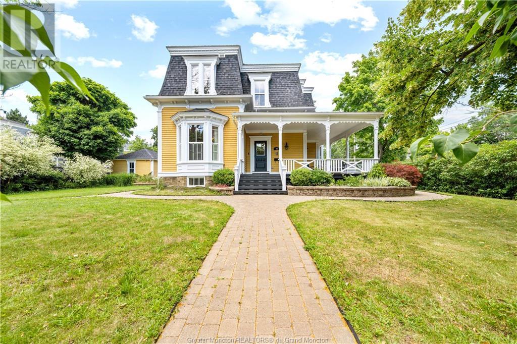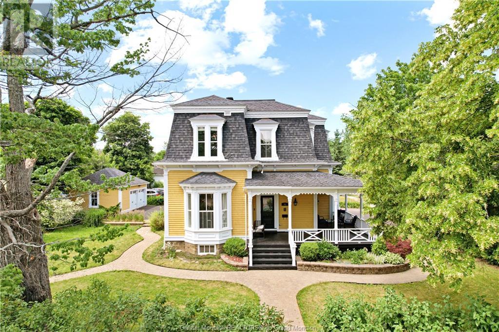93 Victoria Street, known as the Record House, is a distinguished historical residence in Moncton, New Brunswick. Built in 1878, this 2 story house is an excellent example of Second Empire architecture, featuring a mansard roof, ornate woodwork, and intricate details. The exterior boasts a stone foundation, bay windows, and a crafted veranda with molded cornices and decorative balustrades. The property also includes a detached double car garage for added convenience. Inside, the home combines historical charm with modern comfort. The spacious foyer, original hardwood floors, and high ceilings set a welcoming tone. The living room features a classic fireplace and large windows, while the adjacent formal dining room is ideal for gatherings. The kitchen, updated with modern amenities, retains its vintage appeal. Upstairs, the bedrooms are spacious with large windows providing natural light. Bathrooms are meticulously maintained, blending modern convenience with historical aesthetics. The master suite includes an en-suite bathroom and a walk-in closet. Charles B. Record built the house for his son, Edwin A. Record, who led the Record Foundry and Machine Company, contributing significantly to Moncton's economy. The house reflects the architectural trends of its time and Moncton's industrial growth. The Record House stands as a cherished landmark, embodying Moncton's rich history and heritage. (id:58209)